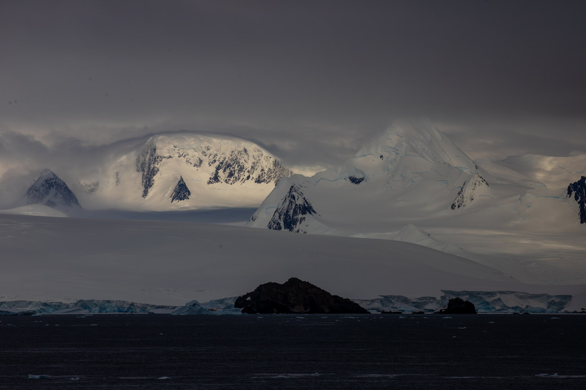 Три дні пройшли, і ось стало з’являтися більше айсбергів, а на горизонті проглядалися вершини. Гори — для мене це було найбільшим здивуванням: я очікувала скоріше плоский рельєф, можливо, невеликі пагорби, а тут — справжні гори! Такі гострі піки, що дух захоплює!