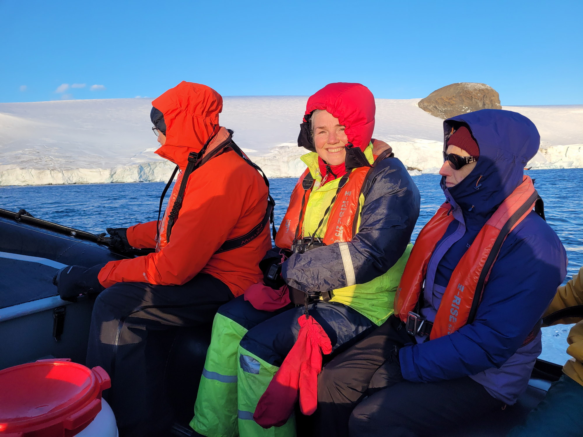 І ось увечері другого дня вдалині з’явилася земля — Південні Шетландські острови. Ми навіть встигли після вечері зробити коротку поїздку на зодіаках: побачили перших пінгвінів, але погода була кепська — дощ зі снігом, хвилі захльостували човен. Зате це була справжня перевірка спорядження. Я навіть подумала, що так буде завжди, але виявилося — це була найгірша погода за всю подорож, далі було тільки краще!