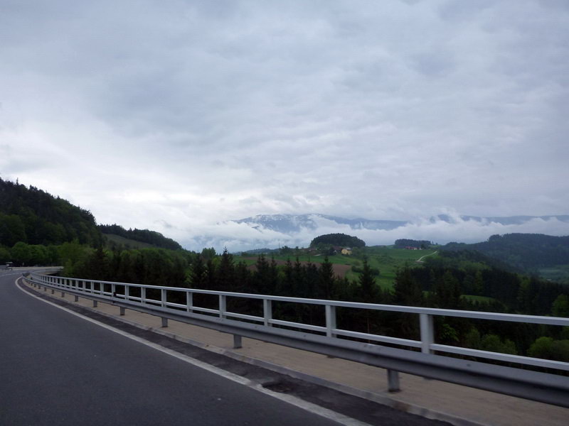 С каждым пройденным километром Альпы становились все ближе. И нашему TransAlpу предстояло уже во второй раз переехать Альпы. И чем ближе мы подбирались к горам тем сильнее сгущались над нами тучи. Дождь то начинался, то прекращался. Можно было заскочить в туннель под проливным дождем и выехать в место где его нет, а бывало и наоборот. В общем опять мы промокли насквозь, но нас грела надежда, что на равнинной части таких дождей нет, да и виды кругом с клочками облаков не оставляли равнодушными.