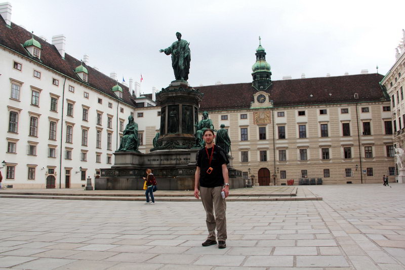 Через узенькие улочки и большие арки попадаем на Хельденплац. Которая является внешней дворцовой площадью резиденции Хофбург. На площади множество посетителей почти всегда, но нам удалось увидеть ее почти пустынной – как, спросите вы? А тут нам помогла весенняя гроза, которая разогнала народ под всевозможные выступы и архитектурные изыски. И только свежая зелень и барабанящий дождь могли отвлекать от созерцания архитектурного великолепия.