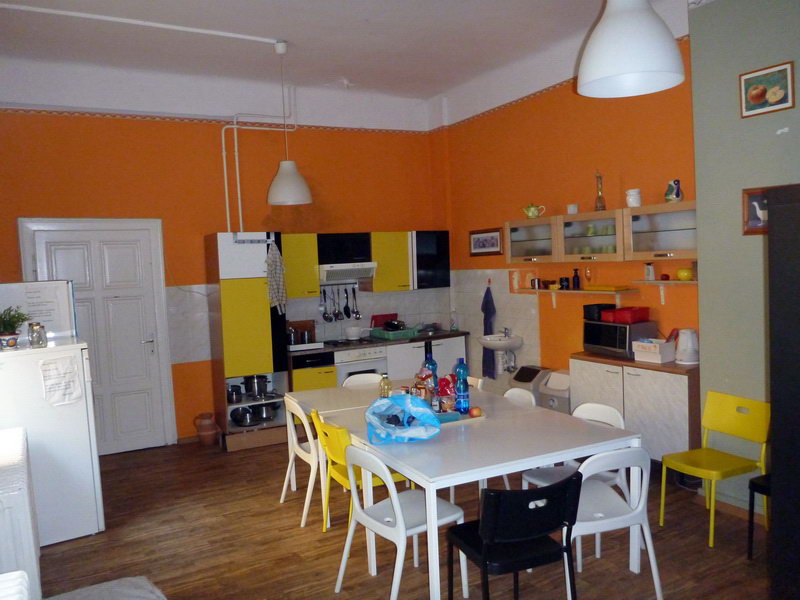 Хостел домашнего типа, по-моему в нем всего 3-4 комнаты, но при этом большое общее помещение, с парой компов, столиками-диванчиками и кухней, которая отгорожена стенкой с книгами. Стоимость хостела 9 евро с человека, плюс парковка мотоцикла 4 евро. Для мотоцикла нам выделяют помещение подъезда, а что сухо, тепло, дверь на замке – нам удобно)